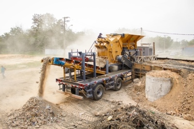 Em setembro, a usina móvel iniciou o processo de beneficiamento dos resíduos da construção civil (RCC), que serão reaproveitados para a manutenção das estradas rurais e vicinais.